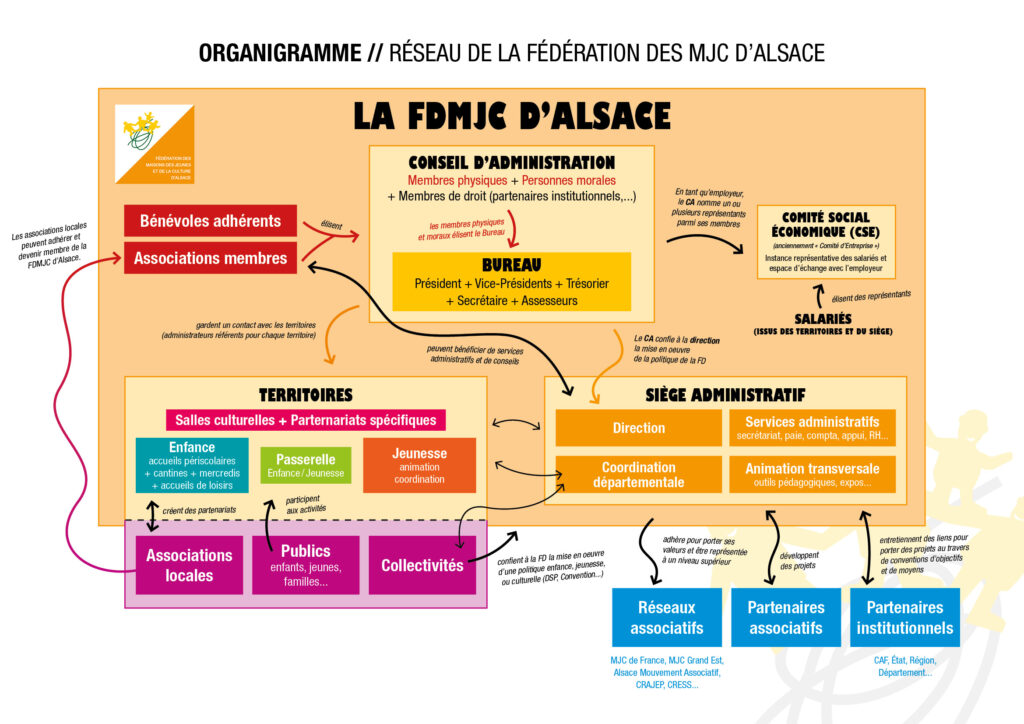 FDMJC D’ALSACE signifie Fédération Des Maisons des Jeunes et de la Culture d’Alsace. Il s’agit d’une association (de droit local Alsace-Moselle) fédérative d’éducation populaire et d’animation socioculturelle. Pour en savoir plus, rendez-vous sur le site : www.fdmjc-alsace.fr
